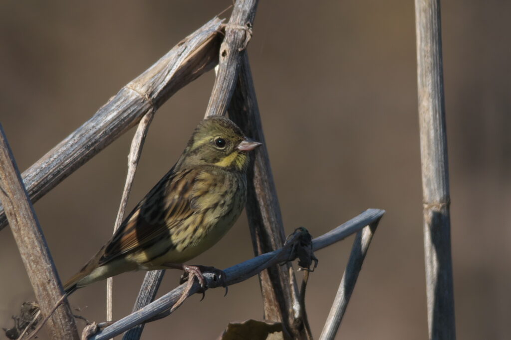 チョウゲンボウ バッタ? シジュウカラ、メジロも一緒にい